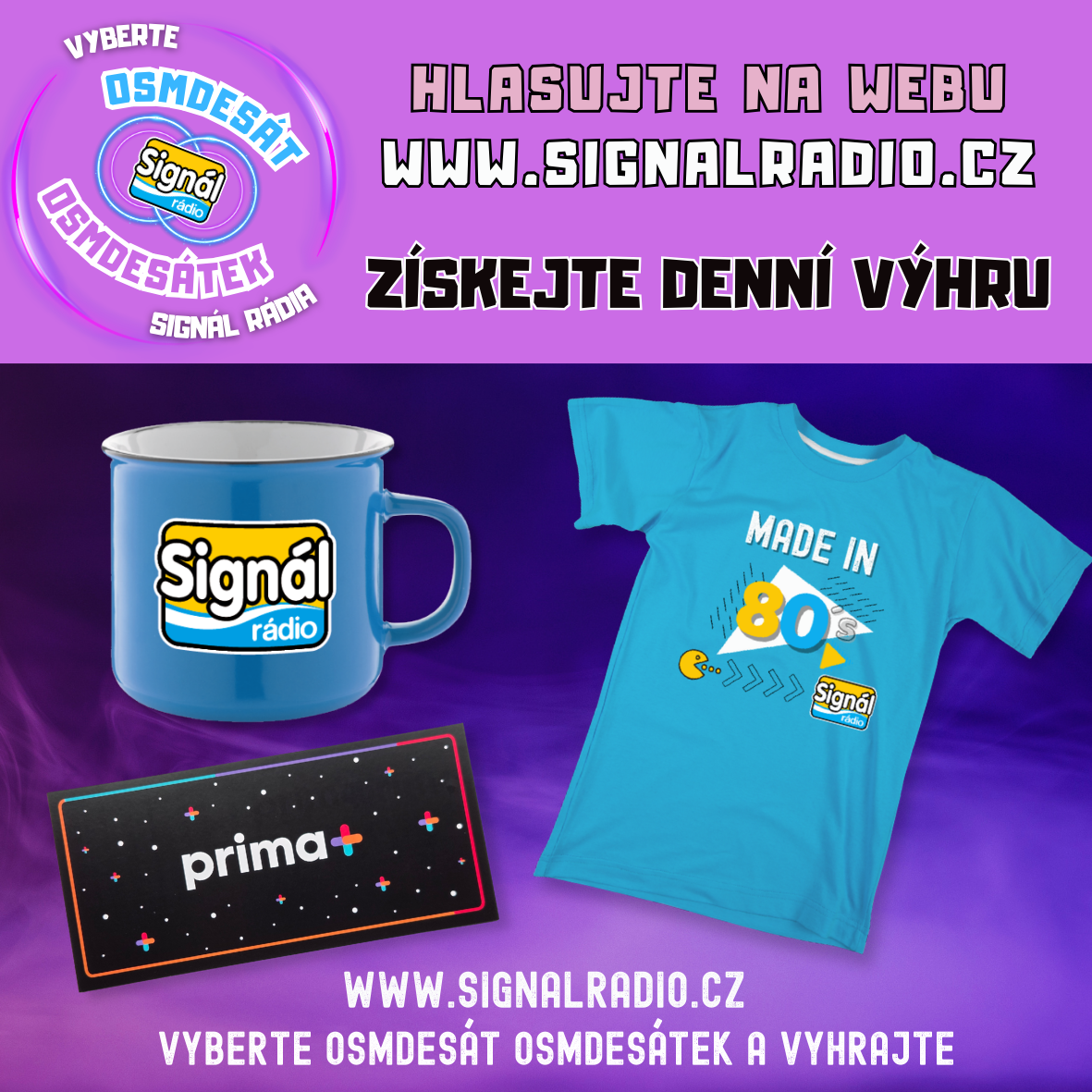 Vyberte s námi 80 největších světových hitů 80. let. Zapojte se do hlasování v naší největší hitparádě OSMDESÁT OSMDESÁTEK. Abyste to měli trochu jednodušší, vybrali jsme předem 200 hitů, které v osmdesátkách nejvíce bořily příčky hitparád. Ale dál už je to na vás. Navíc každý den jeden hlasující získá dárek - naše rádiové tričko a k tomu zburusu nový hrneček. Na konci hlasování pak ze všech zúčastněných vybereme jednoho, který si užije wellness pobyt pro dva!